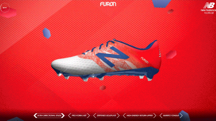 I was asked by friends from Mono to design an experience showcasing New Balance's football boots. The result was modern and UI driven WebGL demonstration, gesture controlled and mobile friendly.